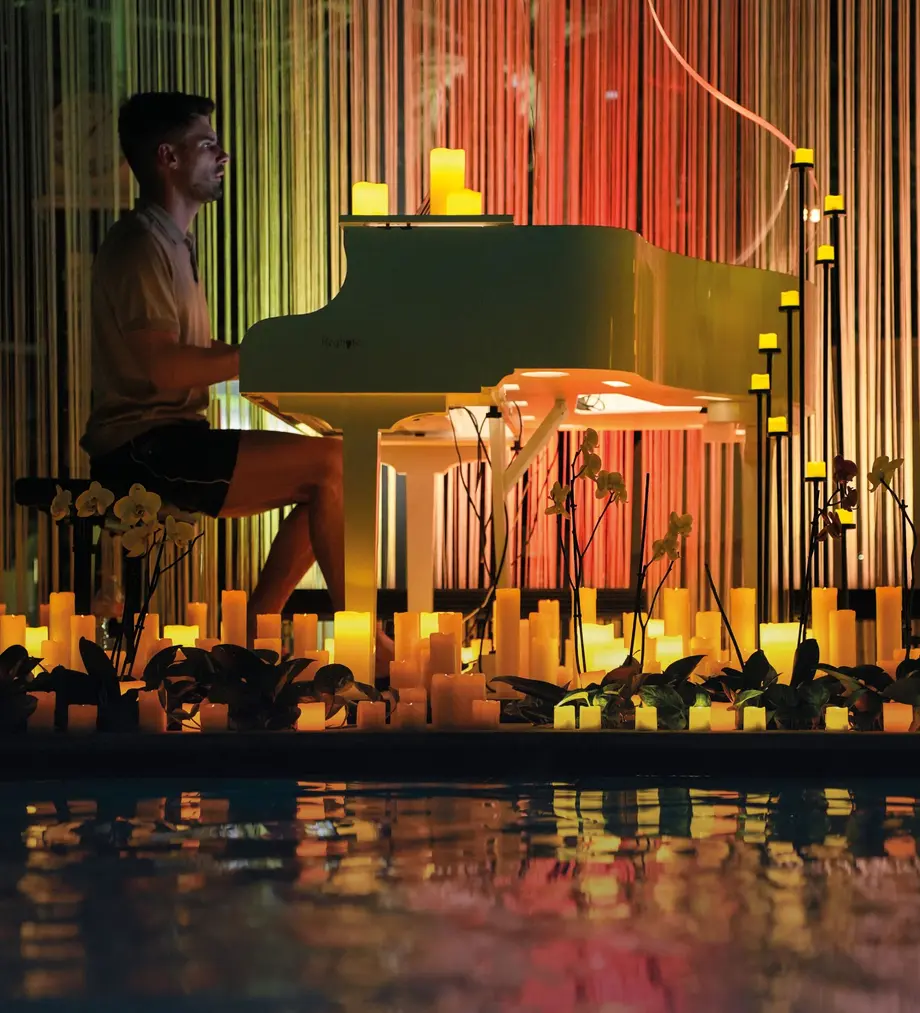 Là où la lueur des bougies rencontre l'eau chaude - des moments qui brillent. La lumière des bougies, l'eau et la musique live se conjuguent pour créer un cadre de concert inhabituel, qu'on ne trouve nulle part ailleurs. Tandis que la lumière scintille sur la lagune et que les sons remplissent l'espace, se dégage une atmosphère à la fois détendue et particulière – un moment auquel on aime repenser longtemps.