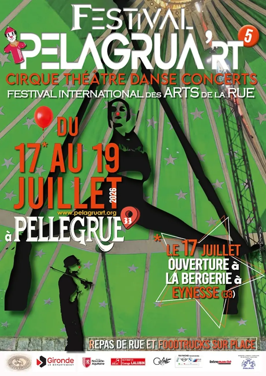Depuis 2022, la bastide de Pellegrue (33790) accueille le Festival international des arts de la rue, PELAGRUA’rt. Le week-end du 17 au 19 juillet 2026 verra donc la 5e édition de cet événement, qui a fait son p’tit trou de culture dans ce joli écrin, devenu le temps d’un week-end un chapiteau à cœur ouvert sur les arts.