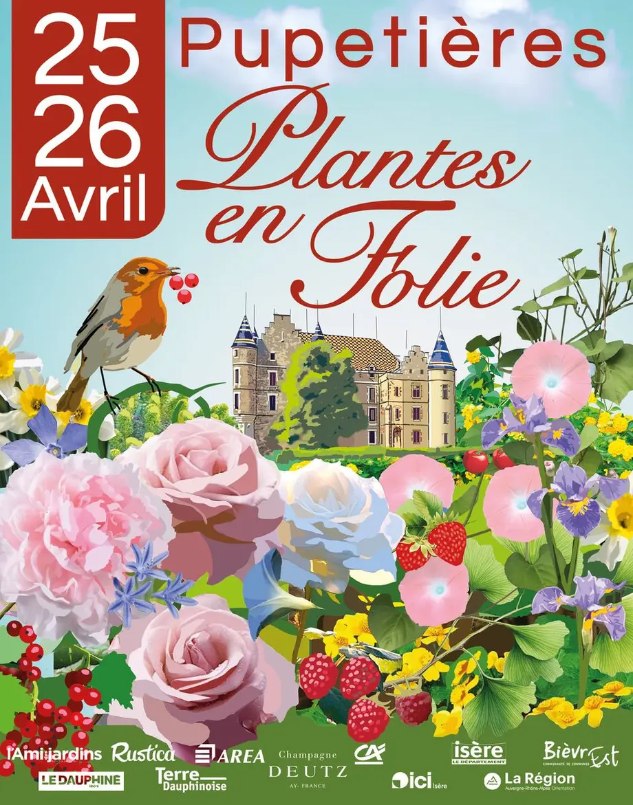 Plus de 100 exposants: les meilleurs spécialistes du monde végétal sélectionné par notre comité. Artisans, artistes vous présentent leurs création original autour du jardin "Un art de vivre". Ateliers, concours Arts floral, expositions, animations, visites du château rythment ces 25 et 26 avril 2026. Restauration sur place en extérieur et intérieur voir site https://www.pupetieres.jimdo.com