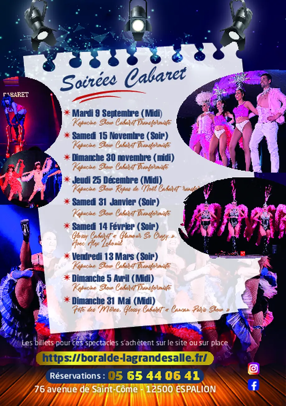 Kapucine Show Cabaret TransformisteDu 25/12/2025 au 05/04/2026 EspalionDécouvrez Kapucine Show, notre show phare où l’art de la danse, du transformisme et l’émotion sont au rendez-vous. Vous serez également enchantés par le charme du […]