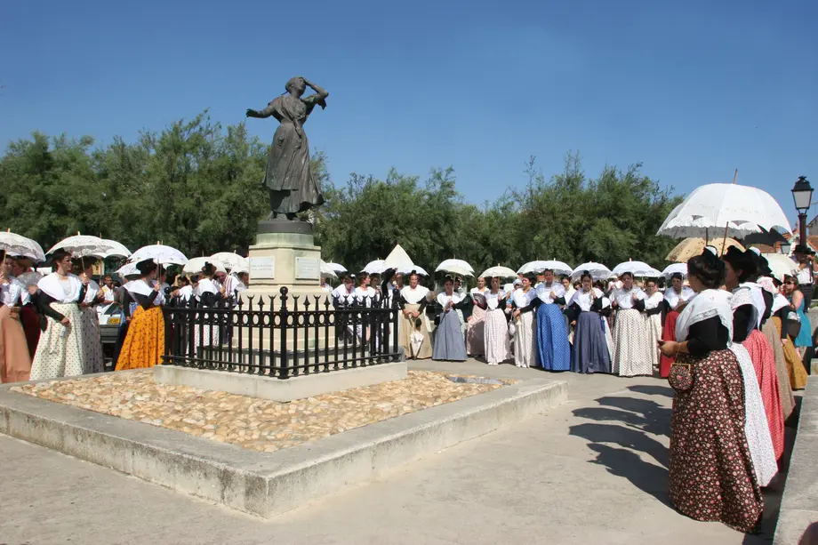 - À 18 h 00 : défilé des gardians et des arlésiennes en ville et hommage à la statue de Mireille.