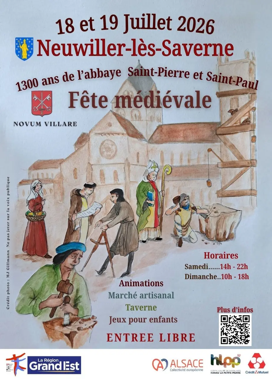 L'abbaye de Neuwiller-lès-Saverne célèbre son 1300e anniversaire. Pour marquer ce jubilé exceptionnel, l'association Patrimoine organise une grande fête médiévale immersive au cœur du village les 18 et 19 juillet 2026.