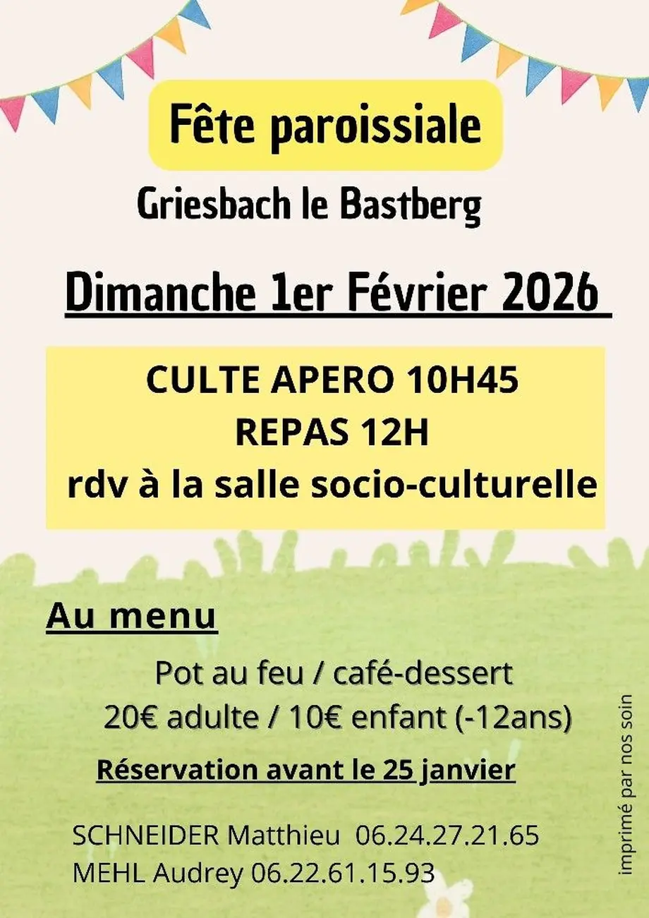 Culte apéro à 10h45, repas à 12h.