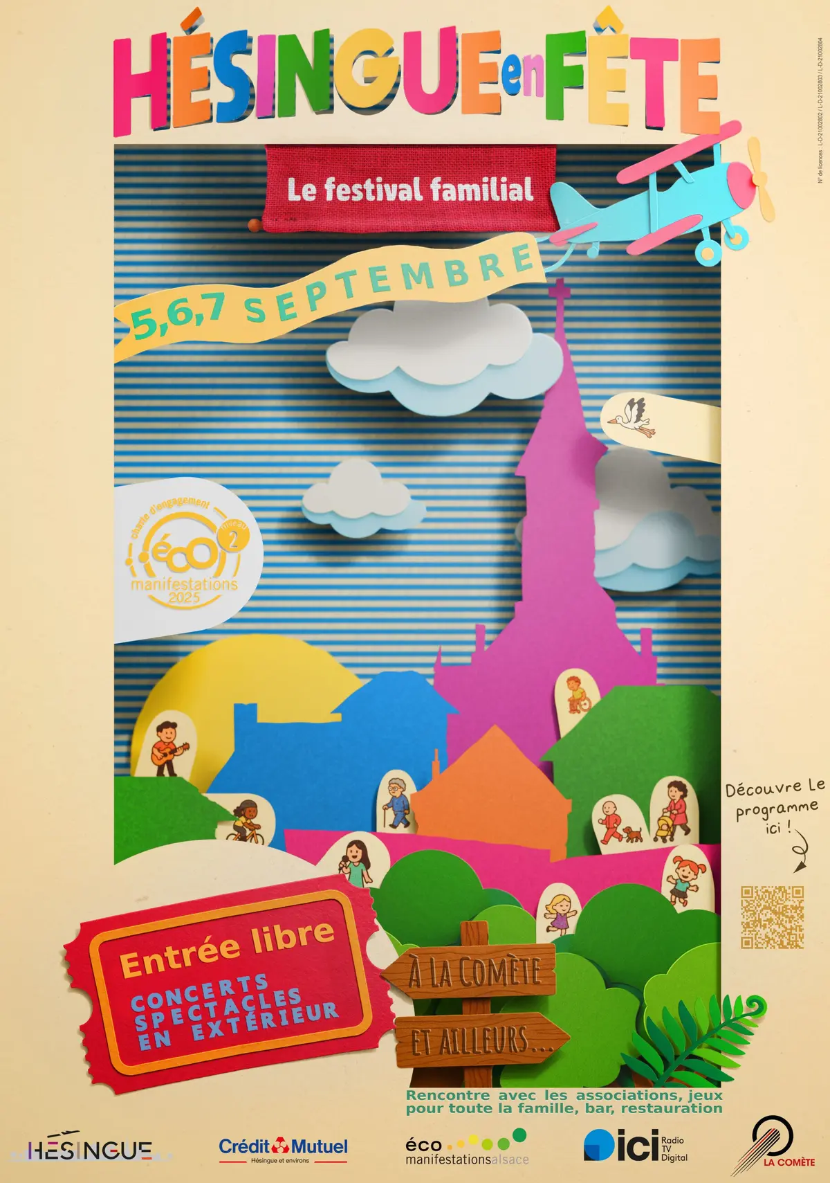 Pour célébrer la rentrée, La Comète vous invite à son évènement festif "Hésingue en fête", les 5, 6 et 7 septembre 2025. Venez en famille et profitez gratuitement des activités proposées : spectacles, concerts, jeux, animations. Rencontrez les associations Hésinguoises et essayez-vous à différents sports et jeux avec vos enfants !