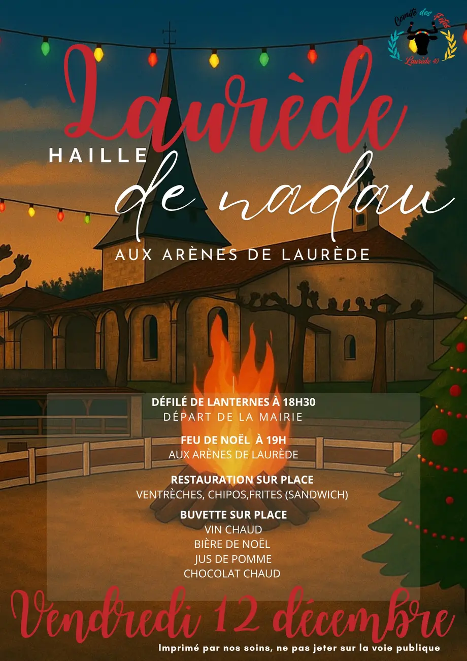 Le vendredi 12 décembre, Laurède s'illumine pour la Haille de Nadau, une tradition gasconne séculaire qui célèbre le solstice d'hiver autour d'un grand feu, symbole de partage et de convivialité.
