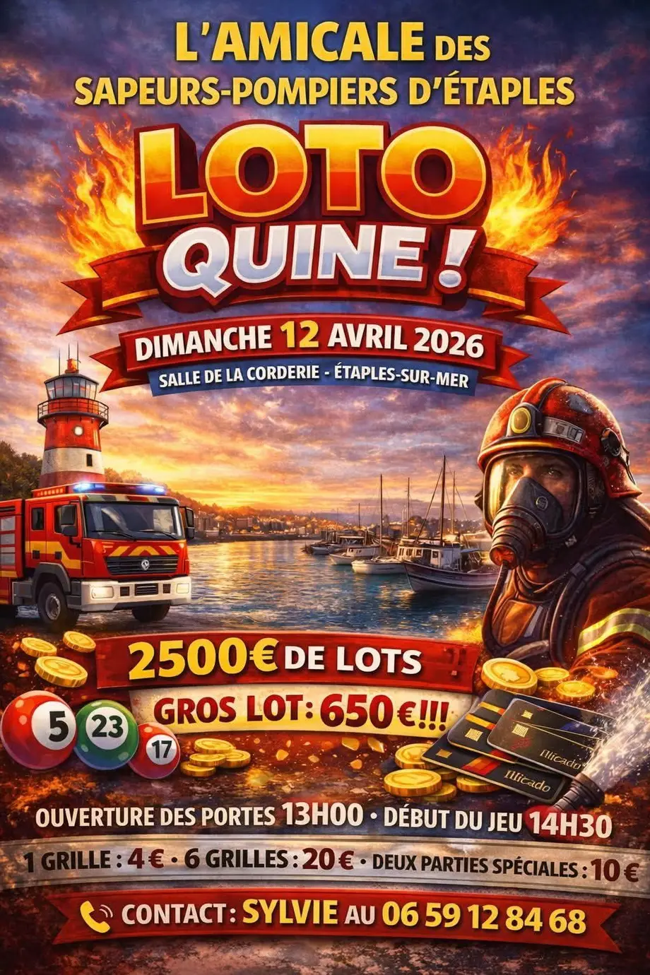 L'amicale des sapeurs pompiers d'Étaples vous accueille pour leur loto traditionnel. Nombreux lots. Petite restauration rapide sur place.