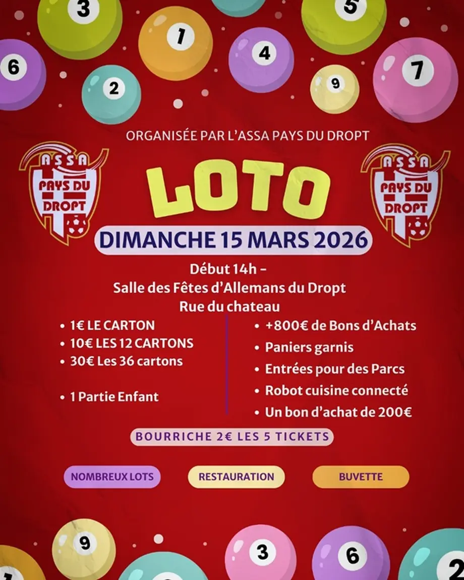 Venez nombreux au loto organisé par l’association ASSA Pays du Dropt.