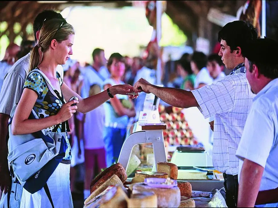 Produits fermiers : fromages de brebis et de vache, porc basque, fruits et plantes aromatiques, vin d'Irouléguy, gâteaux basques, etc.
