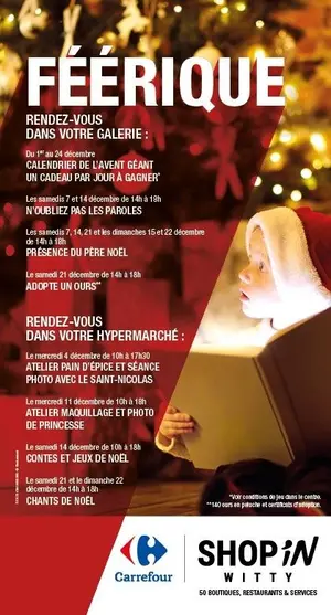 La magie de Noël opère en ce moment au centre commercial Shop'in Witty ! Dans une ambiance féérique, participez la joie au cœur, à toutes les animations, gratuites !