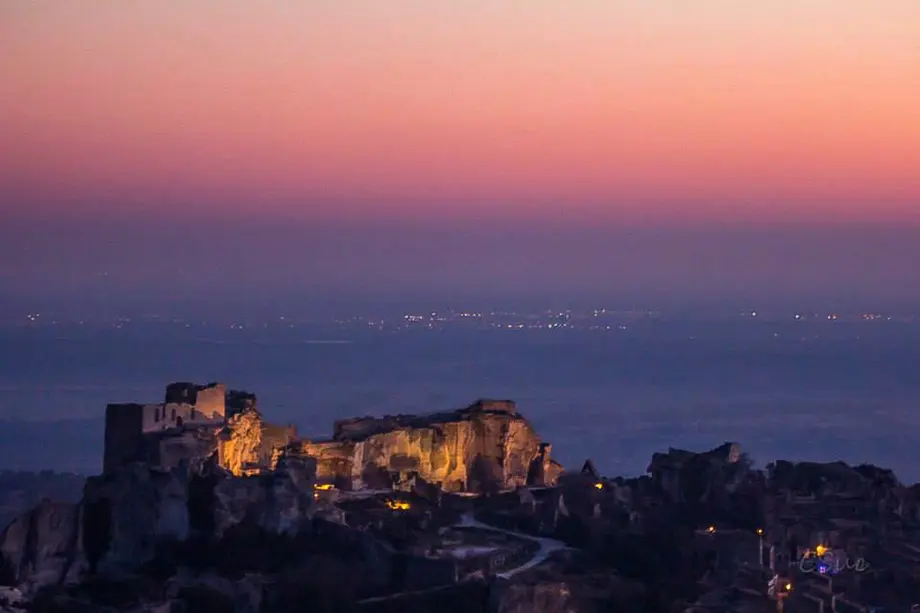 Lorsque la nuit tombe sur le rocher des Baux-de-Provence, le ciel se dévoile dans toute sa profondeur.