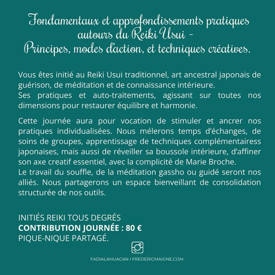 Frédéric Maigne et Marie Broche vous proposent une journée de révisions et d’approfondissements pratiques autour du Reiki Usui.