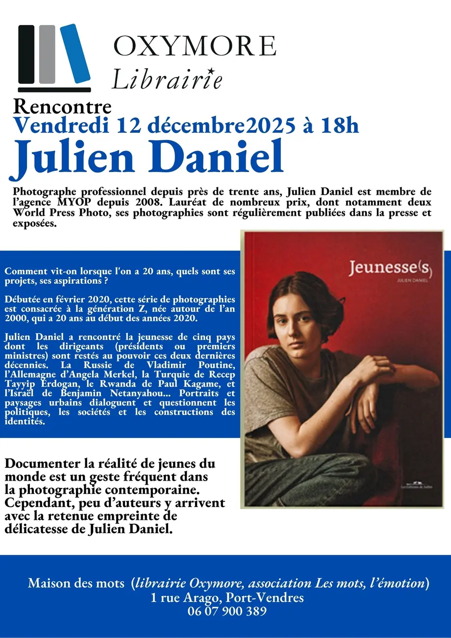 Rencontre Littéraire Aurélia LassaqueLe 11/12/2025 Port-VendresLa Maison des Mots, l'association Les Mots, l'Émotion et la Librairie Oxymore accueillent Aurélia Lassaque, poétesse cosmopolite, lors d'une rencontre littéraire et musicale.