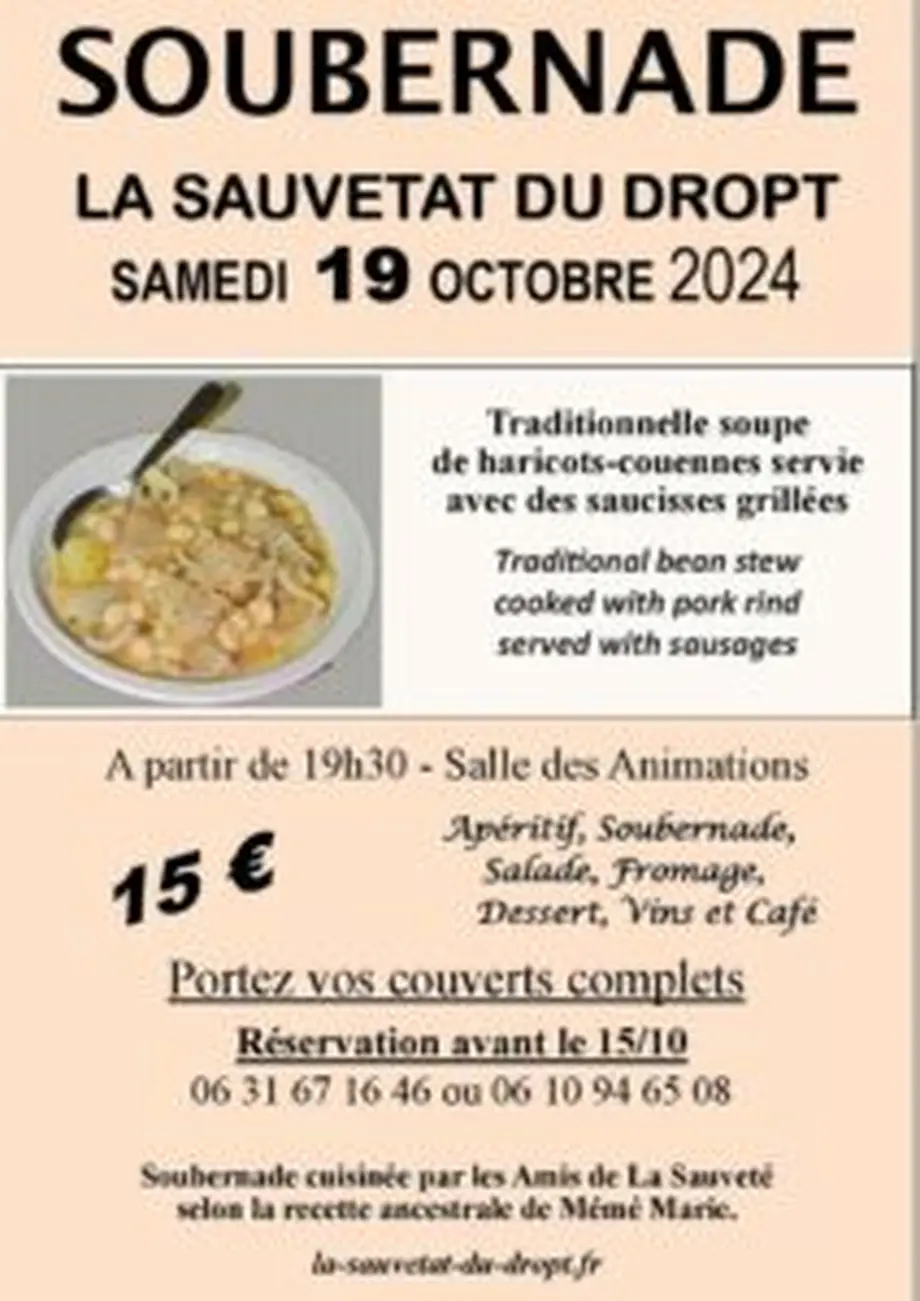 Repas GarbureLe 05/12/2026La Sauvetat-du-DroptL’association Les Amis de la Sauveté vous propose des repas de saison tout au long de l’année.