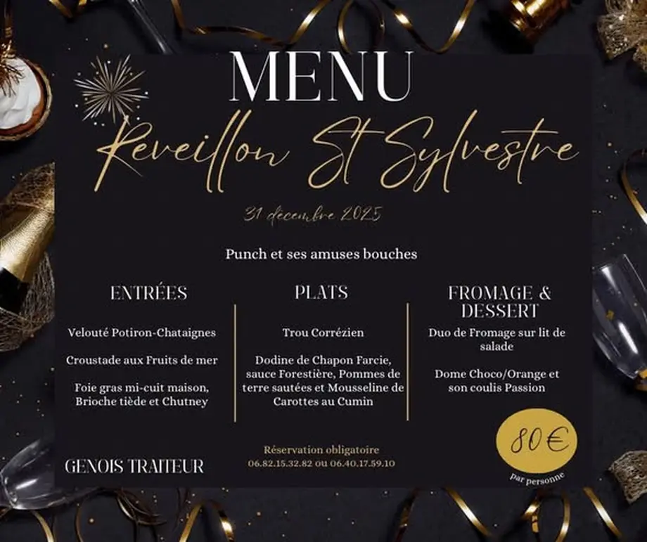 - Réveillon organisé par le Foyer rural de Soudeilles, mais qui se tiendra à la salle des fêtes de Darnets (la salle des fêtes de Soudeilles étant en travaux).