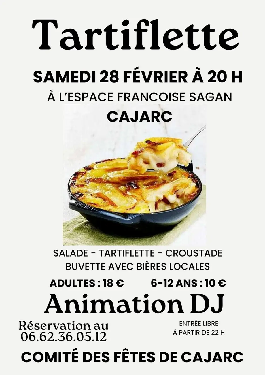 Le comité des fêtes de Cajarc organise une soirée conviviale autour d’une tartiflette à l’Espace Françoise Sagan.