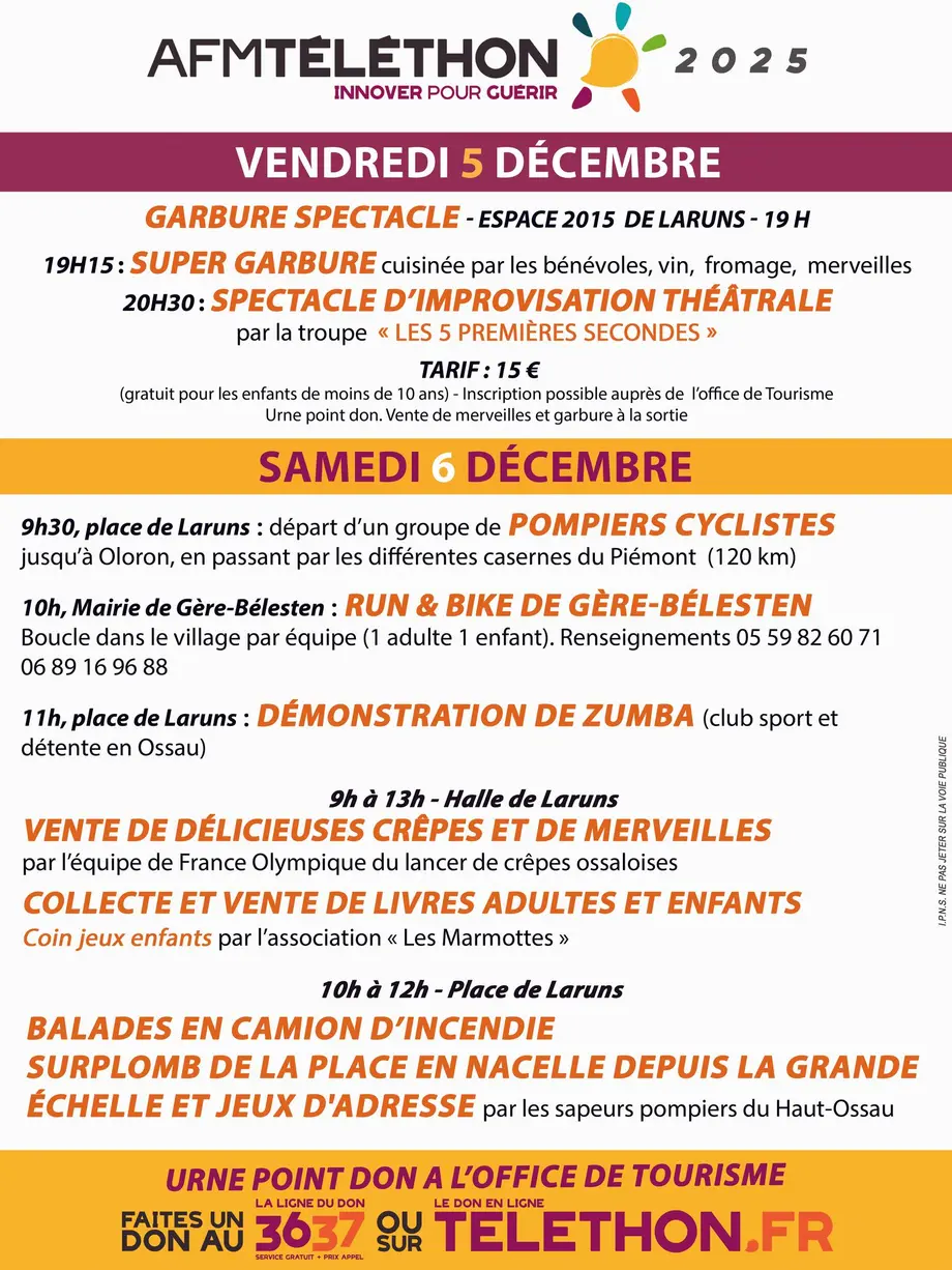 Téléthon 2025 - stands et animationsLe 05/12/2025 Saint-PalaisAu bureau de la MSA, à 9 h. Petit-déjeuner du Téléthon.