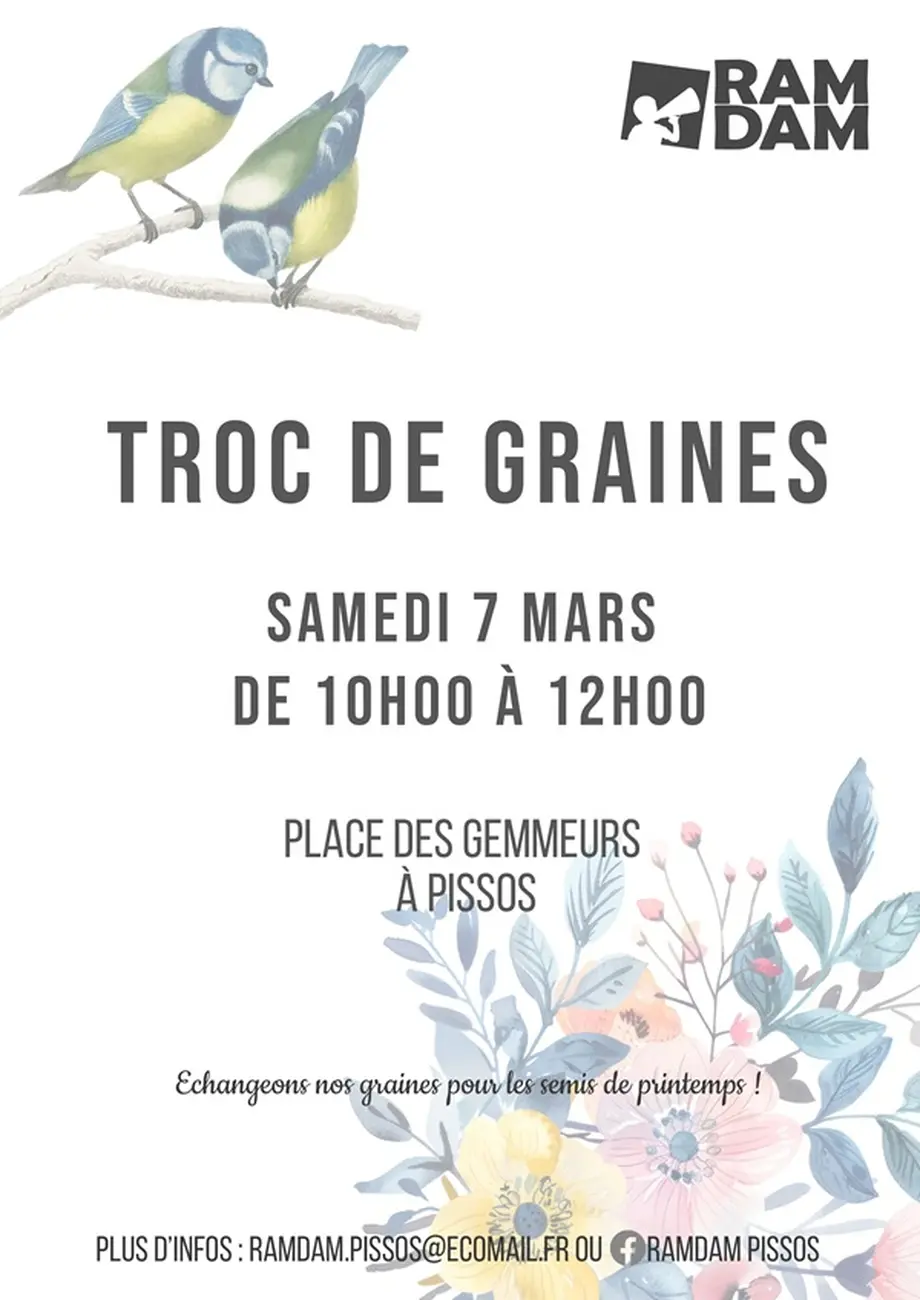 Comme chaque année, l’Association RAMDAM organise un troc de graines, de semences, de fleurs et de boutures afin d’offrir aux habitants la possibilité de diversifier leur potager.