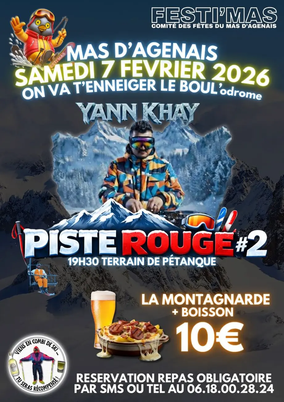 La soirée PISTE ROUGE est de retour et s'apprête à enneiger le boulodrome du Mas pour la deuxième édition, avec DJ Yann Khay aux platines pour mettre le feu !