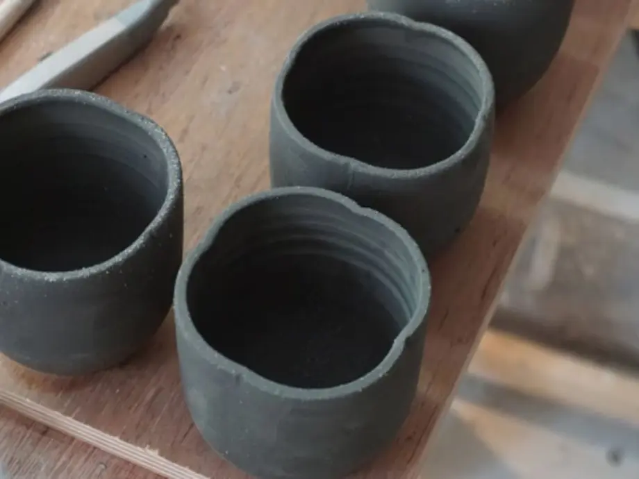 - L’après-midi, vous pourrez continuer de vous exercer sur le tour, et Bénédicte vous accompagnera dans la réalisation des pièces dont vous avez envie ; vous pourrez aussi, si vous le souhaitez, décorer à l’aide d’outils et d’engobes colorés les pièces réalisées durant la journée.