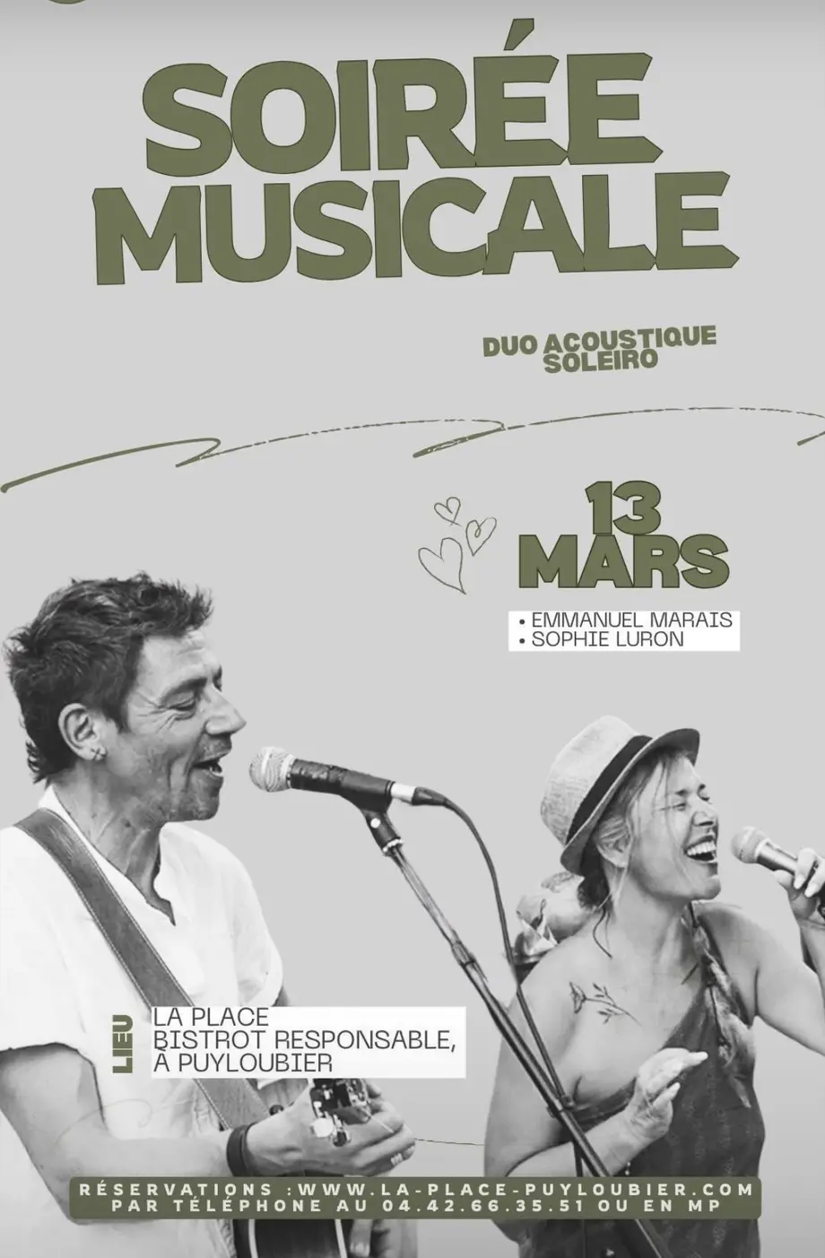 Réservations au 04.42.66.35.51 ou via le lien : https://www.la-place-puyloubier.com/#reservation