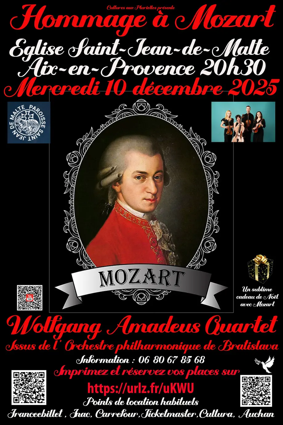 Par amour pour ce compositeur d’exception, le quatuor invite son public à un voyage musical dans des lieux empreints d’histoire, où la musique de Mozart, véritable prière, résonne avec une intensité inégalée.