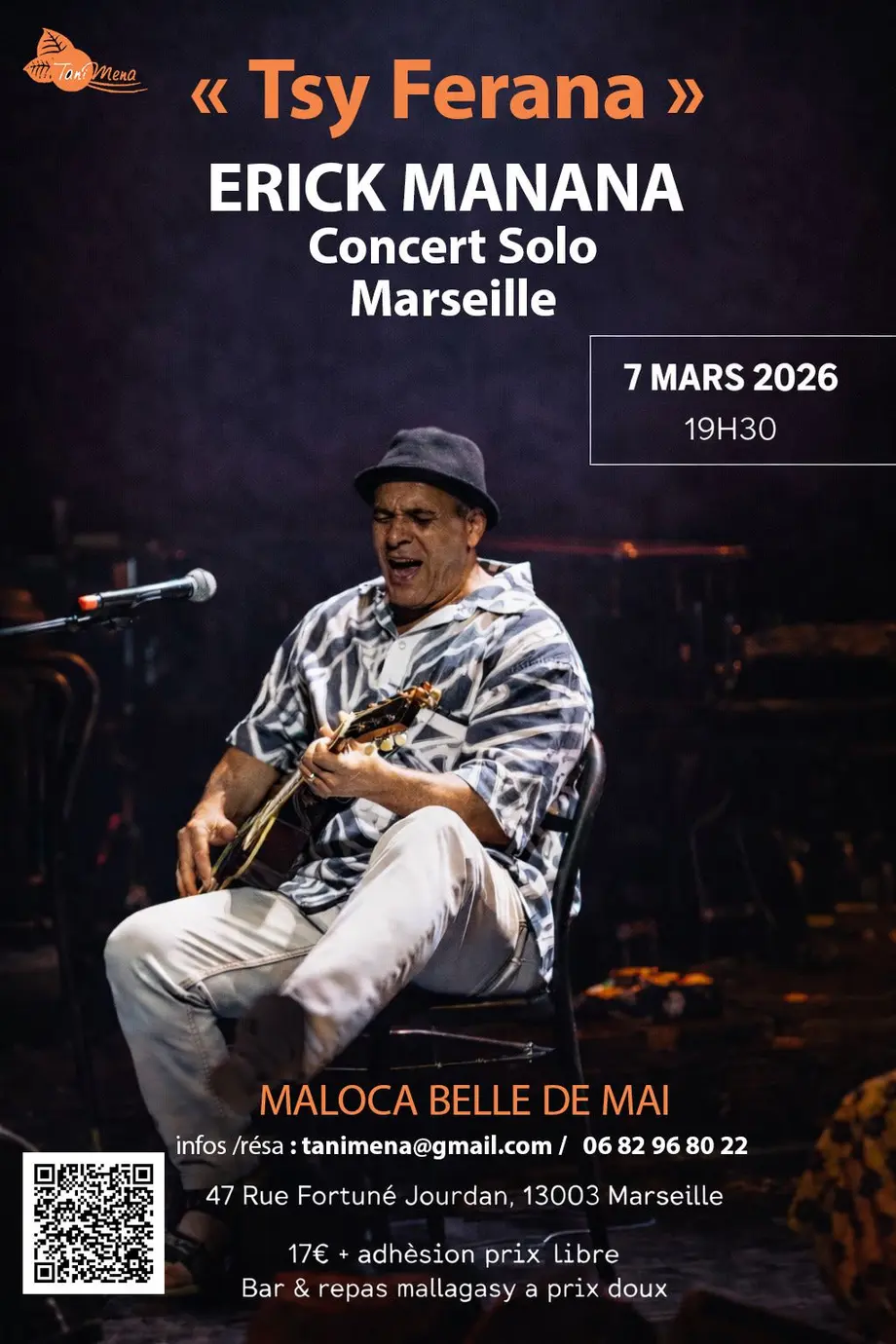 Le Maloca accueille un concert exceptionnel d’Erick Manana, figure emblématique du style musical ba gasy, reconnu pour son engagement à préserver et promouvoir les musiques traditionnelles malagasy. Il nous fera voyager des hauts plateaux de l’Imerina vers d’autres univers comme le beko de la côte sud, les musiques betsileo, les incantations modales du jijy du nord ou encore le salegy.