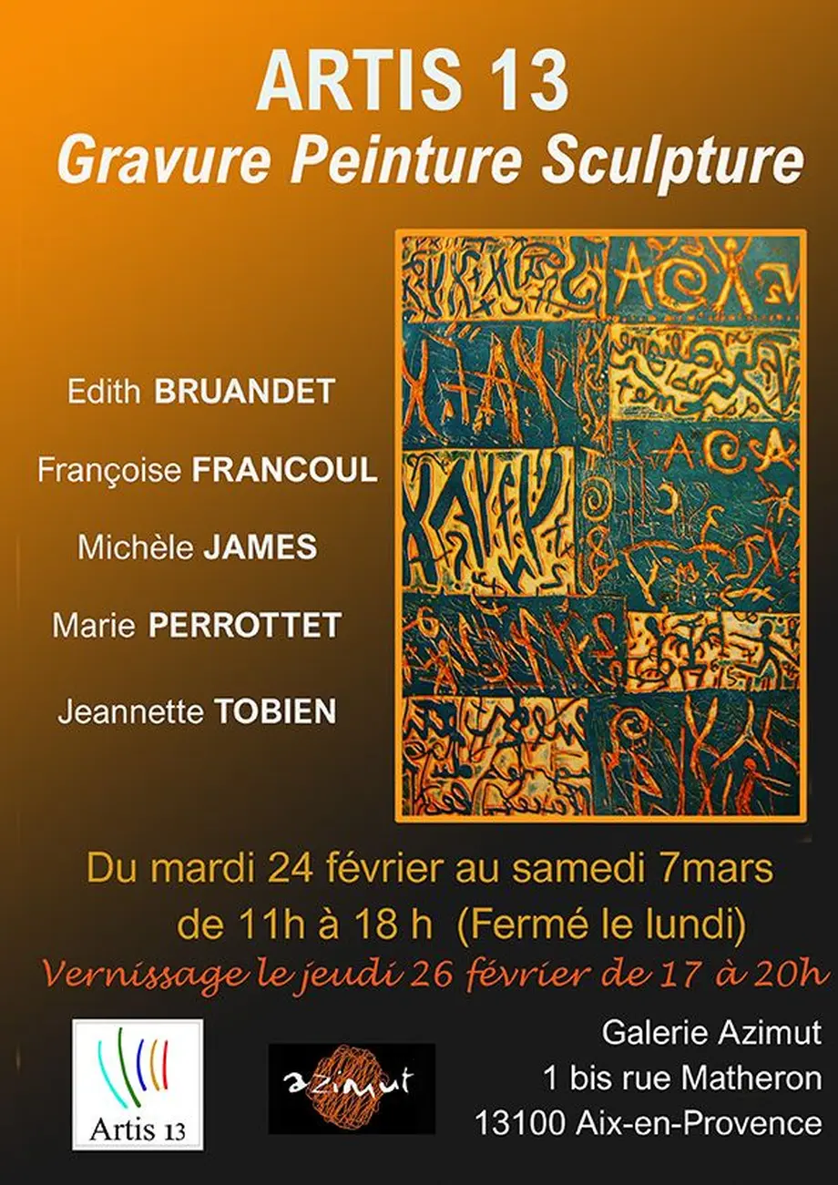 Les 5 artistes du collectif Artis 13 exposent leurs gravures, peintures et sculptures.