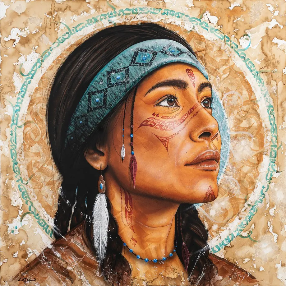 Cofee compose ses figures humaines et animales avec sa technique du calligraffiti qui mêle la rigueur de la calligraphie traditionnelle au mouvement libre du tag. Les arabesques abstraites sculptent les contours de ses portraits, tandis que les regards, traités avec un réalisme saisissant, captent toute l’intensité du vivant.