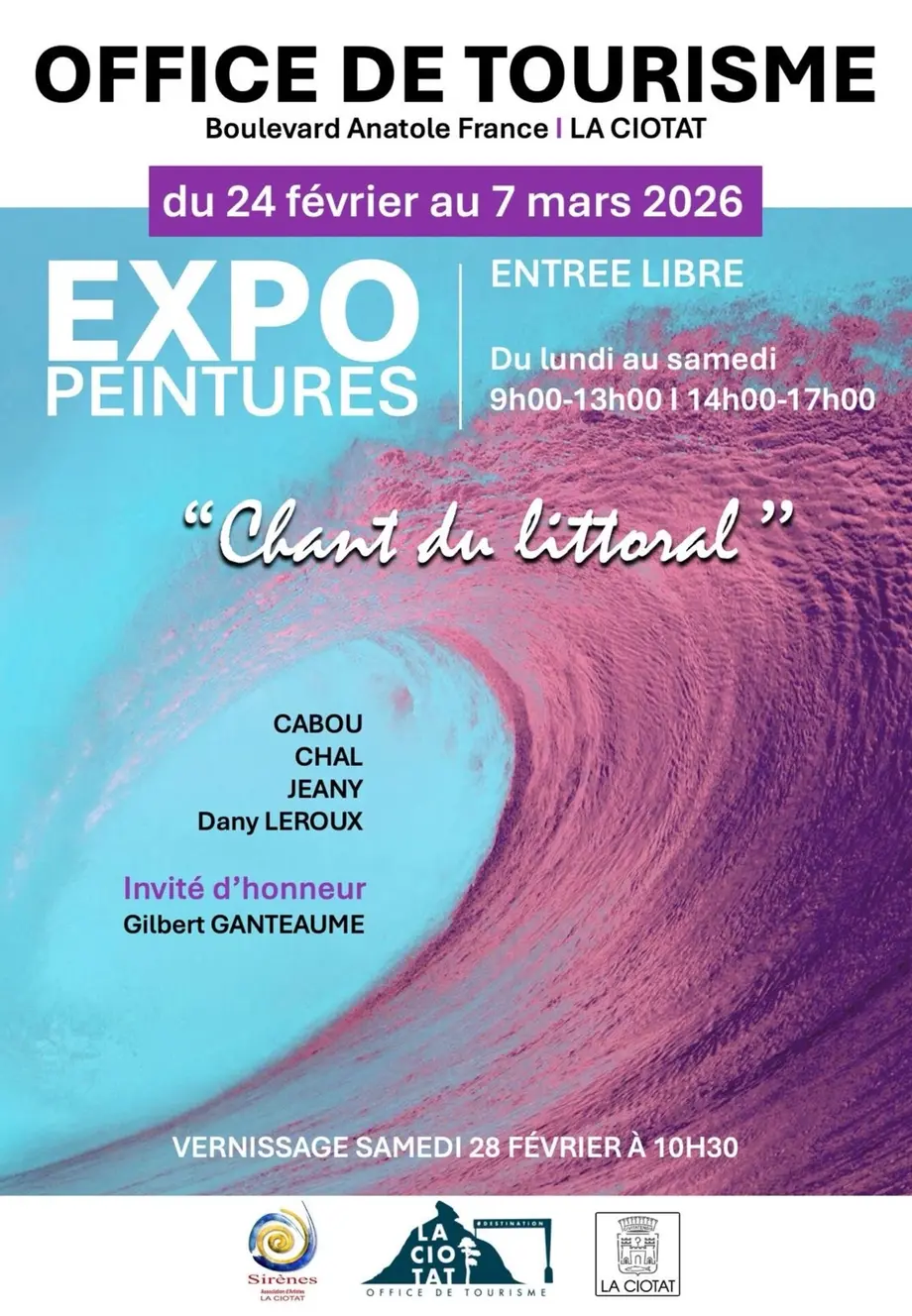L’Office de Tourisme de La Ciotat accueille l’exposition Le chant du littoral, une invitation artistique à explorer les multiples visages du rivage méditerranéen. À travers peintures et sculptures, les artistes réunis proposent une lecture sensible du littoral, entre mémoire, lumière, émotions et dialogue entre la terre et la mer.