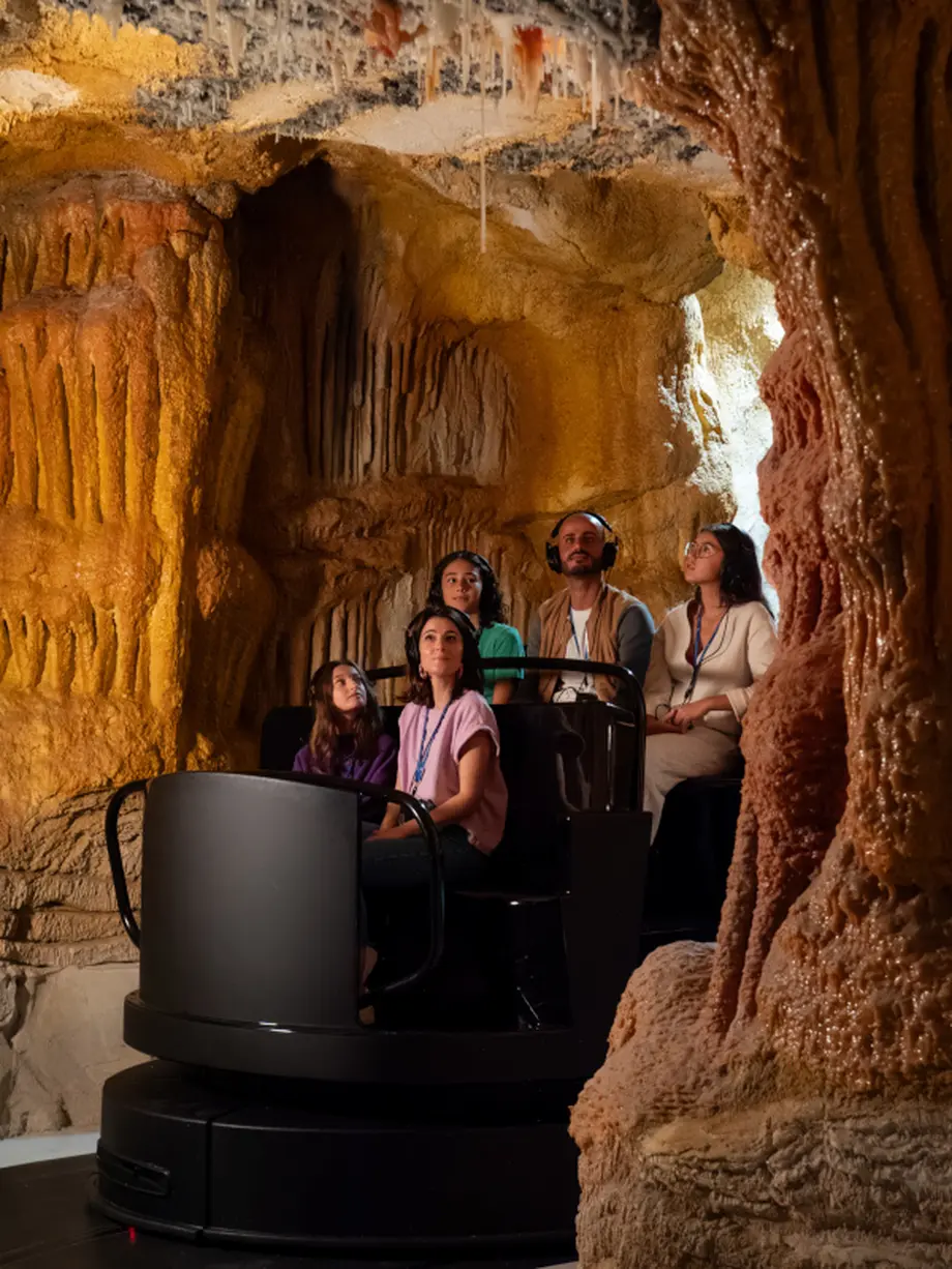 Une visite riche de 480 gravures et peintures pariétales réalisées entre 33 000 et 19 000 ans avant le présent. À cela s’ajoutent des spéléothèmes et d’autres merveilles géologiques, reproduits et mis en scène avec un souci de réalisme s’appuyant sur des données scientifiques.