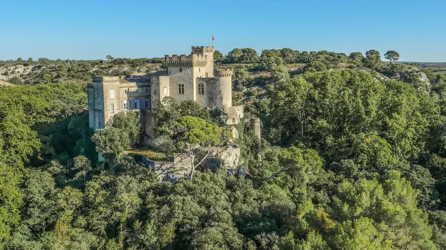 Le Rocher Mistral prend place dans le château de La Barben, édifié à l'origine au XIe siècle sur un éperon rocheux dominant la vallée de la Touloubre. Au fil des siècles, la forteresse médiévale a été transformée en résidence seigneuriale, notamment aux XVIIe et XVIIIe siècles, tout en conservant son implantation défensive spectaculaire.