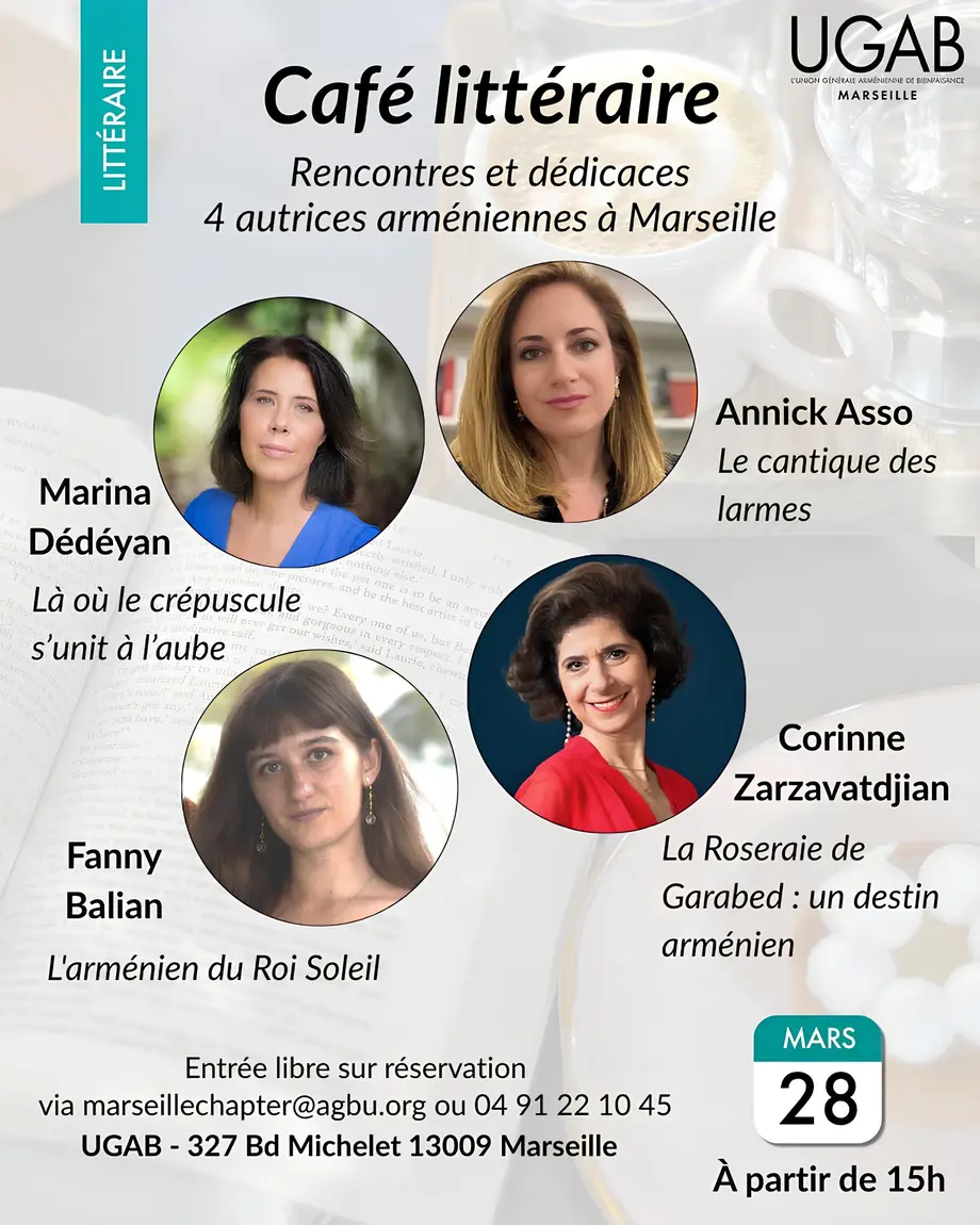Dans le cadre de la Journée internationale des droits des femmes, l’UGAB Marseille met à l’honneur la voix et le talent de quatre autrices arméniennes lors d’un café littéraire exceptionnel.