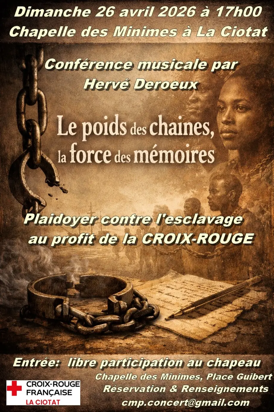 Conférence musicale Le Poids des Chaînes, la Force des Mémoires par Hervé Deroeux