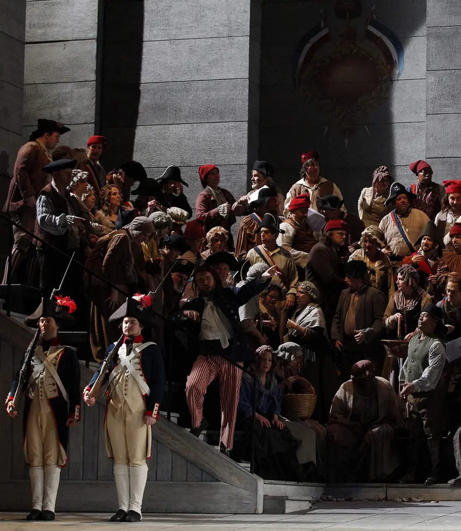 L’opéra de Giordano, écrit pour un trio de superstars, brasse passions privées (amour et jalousie) et passions publiques (la folie sanguinaire du Tribunal révolutionnaire).