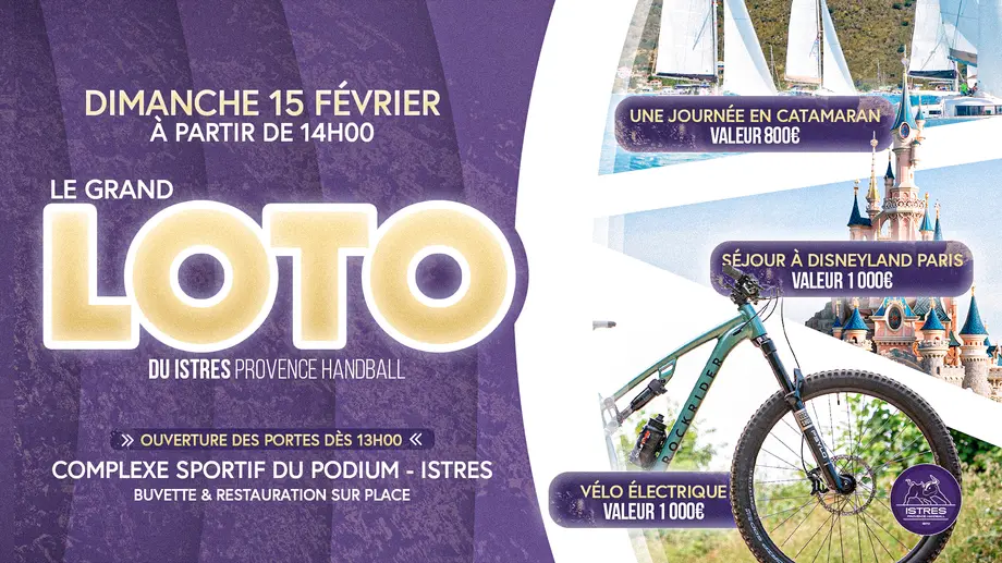 Grand loto des sapeurs-pompiers d'IstresLe 01/02/2026 IstresOuverture des portes à 15 h – début du loto à 16 h.