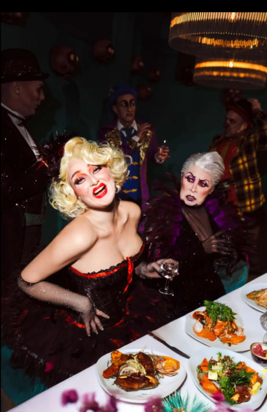 Installés à table, avec de quoi vous sustenter et vous désaltérer, vous assisterez à un spectacle proposé par différents artistes maison, ainsi que par d'autres compagnies et artistes invités.