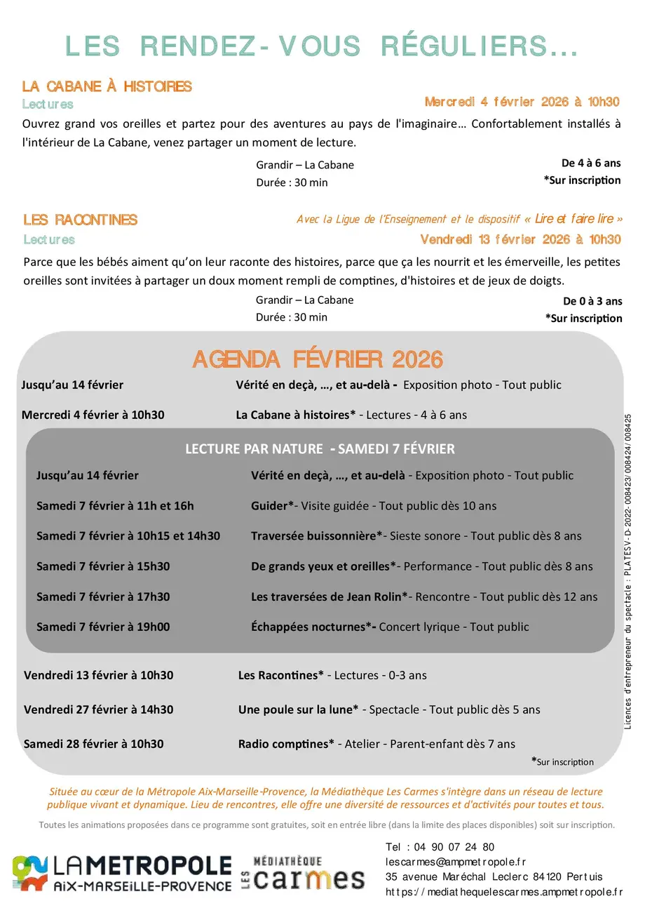 - Mercredi 4 février à 10h30 : La Cabane à histoires* - Lectures - 4 à 6 ans