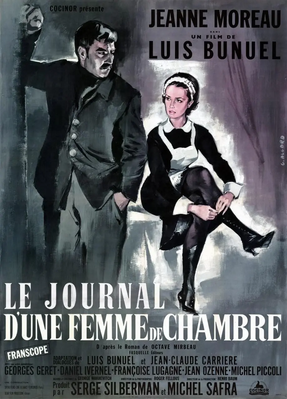 France-Italie, 1964, 1h 32min, comédie dramatique réalisée par Luis Buñuel, avec Jeanne Moreau, Georges Géret, Michel Piccoli, Françoise Lugagne.