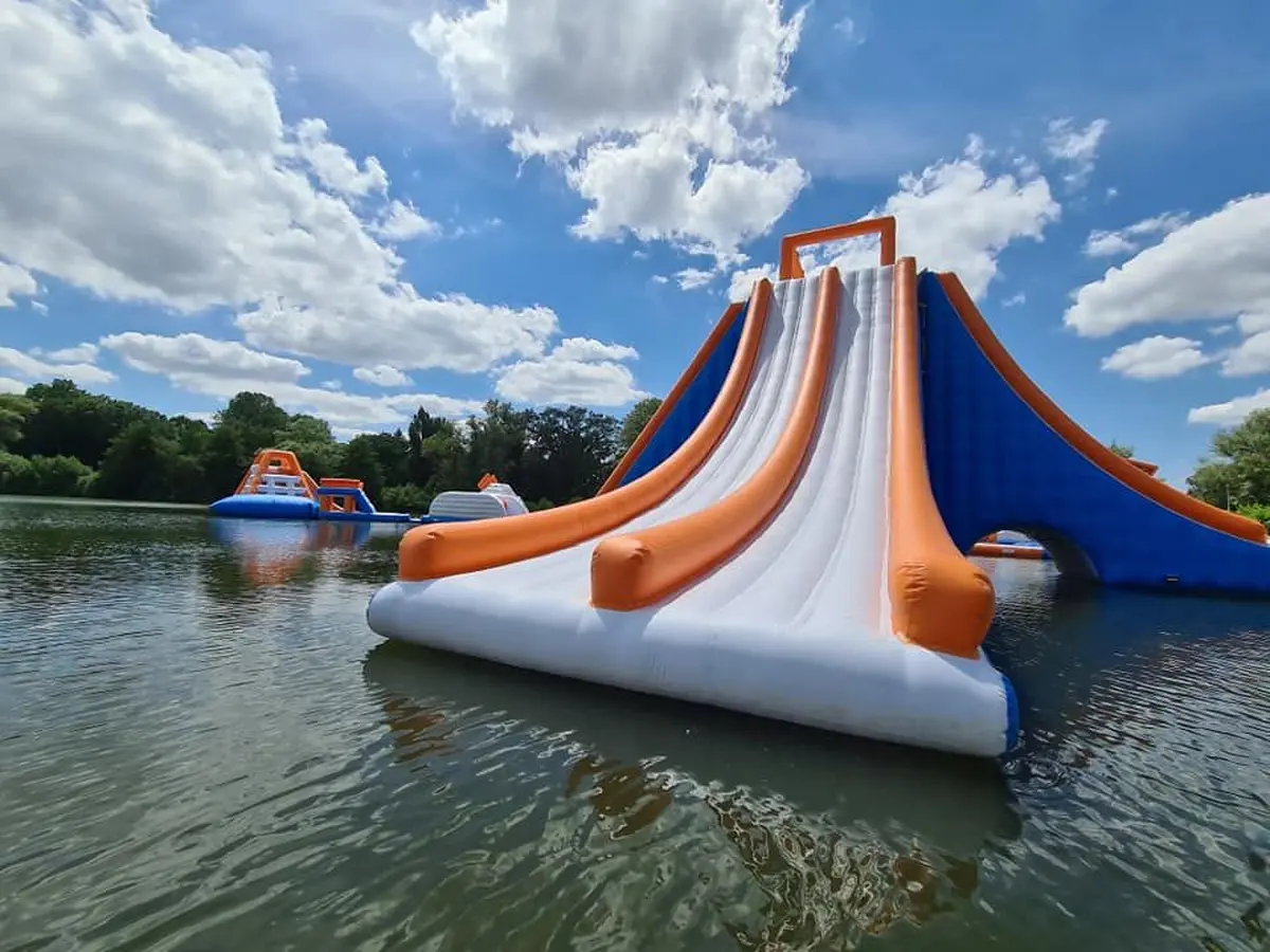 Venez sauter sur le parcours gonflable Crazy Splash ! Sur plus de 2 000m², vous pourrez escalader, sauter, glisser et profiter de l’eau rafraîchissante du plan d’eau du parc de Brieux de Maizières-lès-Metz.