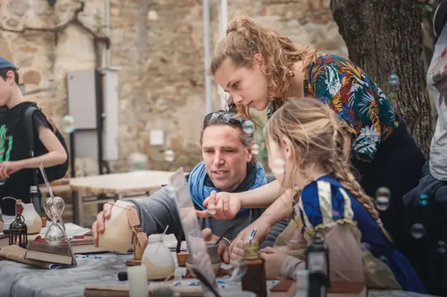 Ce jeu géant est inspiré des livres-jeux, avec une application mobile comme support de lecture. Une expérience hybride entre un jeu de rôle avec un animateur costumé, un escape game pour sauver le Village et une chasse au trésor pour retrouver les indices parsemés à l'aide d'une carte papier et d'une légende magique !