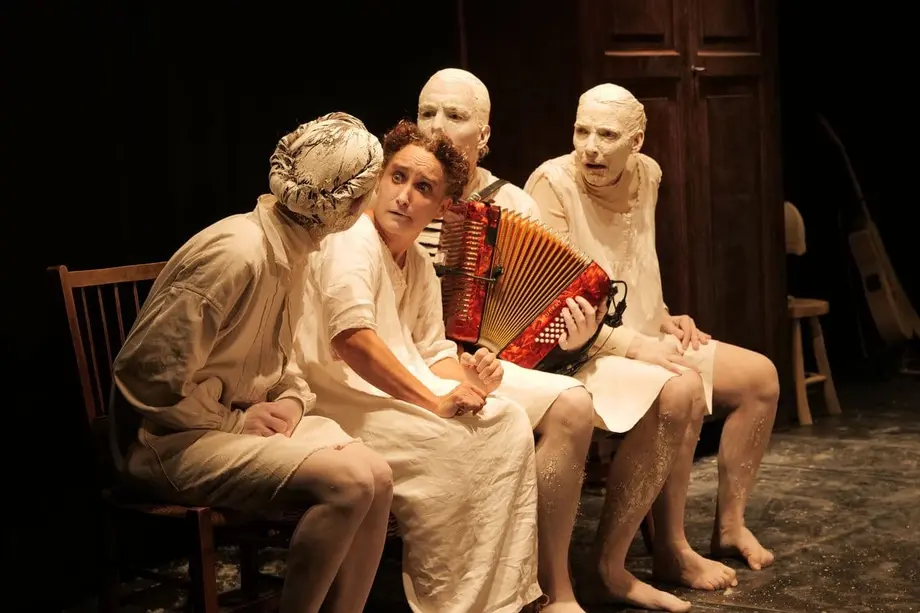 Le public, invité à ce joyeux banquet, est installé de part et d'autre d'une grande table, dans un espace bifrontal.