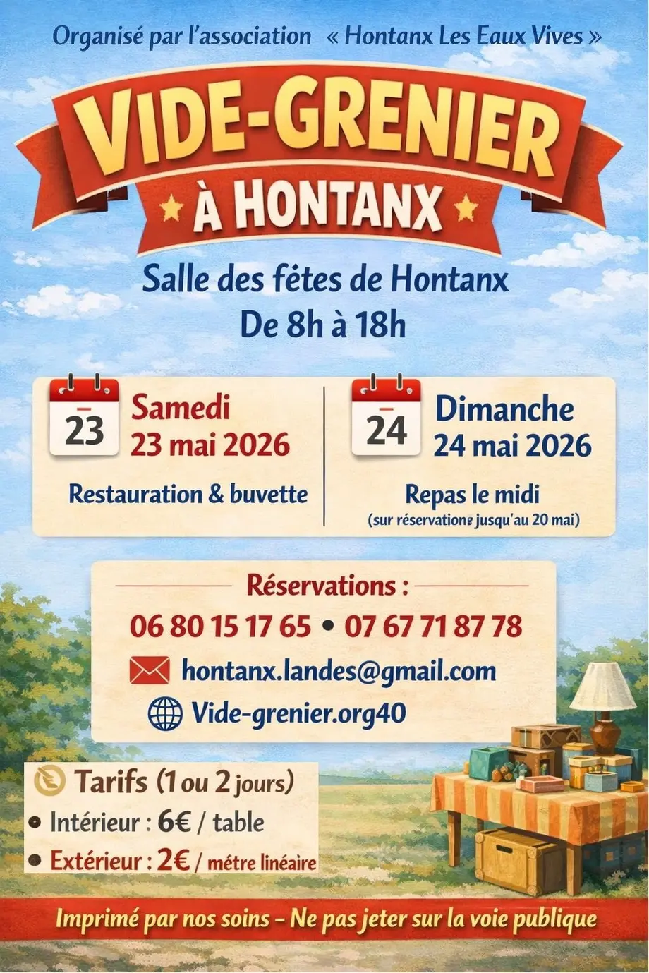 Marre de voir vos malles et votre grenier remplis d’affaires que vous n’utilisez plus et qui encombrent l’espace que vous souhaiteriez exploiter ? C’est le moment de faire des heureux en les mettant en vente lors d’un vide-grenier à Hontanx !