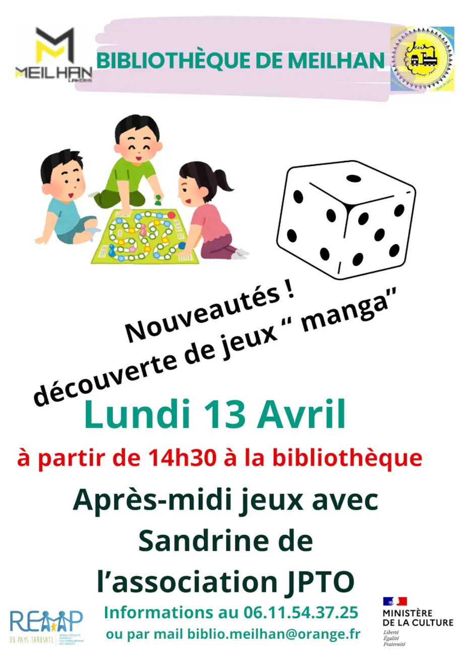 Lectures aux ainésLe 23/04/2026MeilhanVous souhaitez passer un bon moment ? Il y a de la lecture, bien sûr, mais également des jeux et des chansons pour le plaisir de chacun.