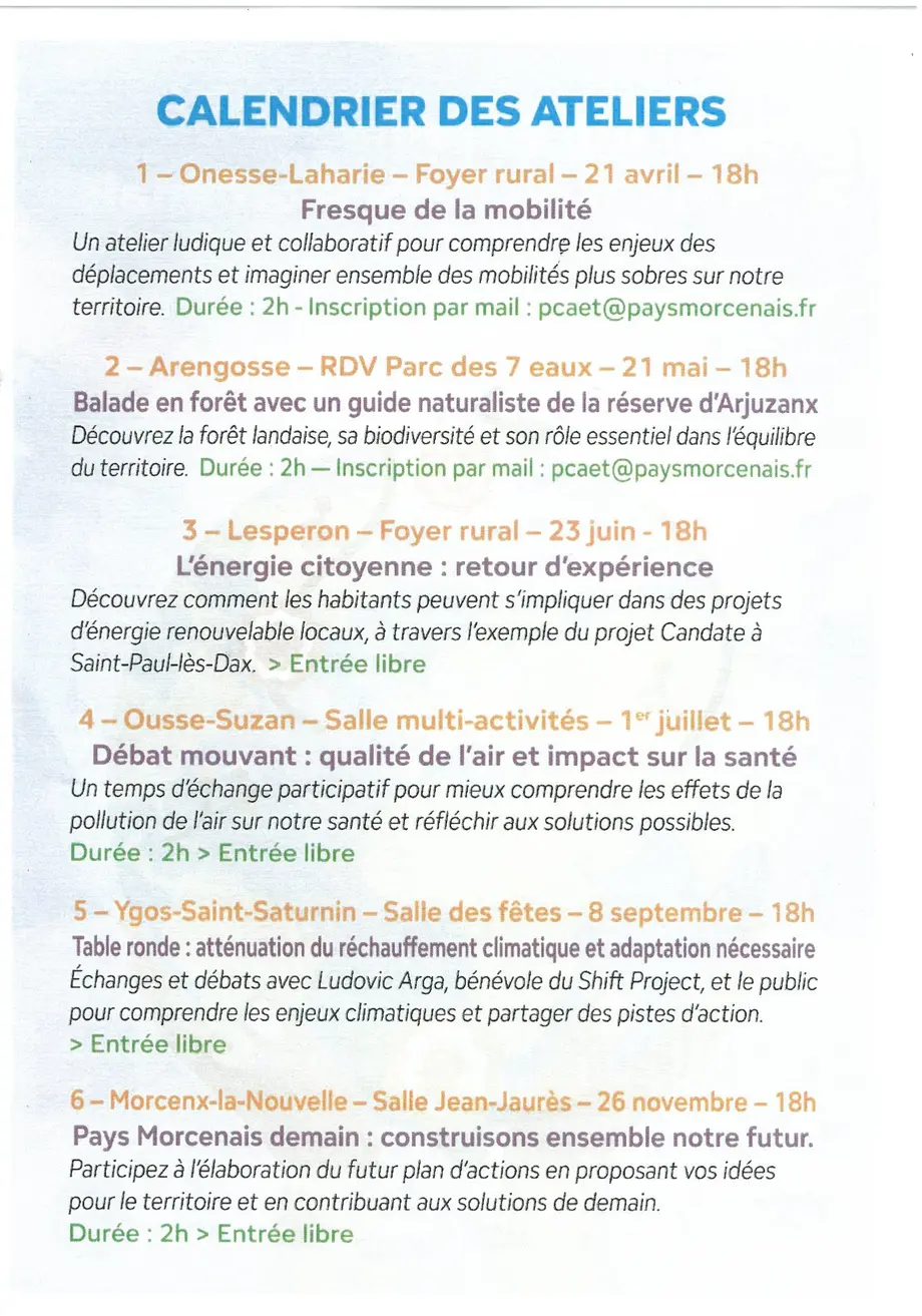 Cet événement a été renseigné par un organisme institutionnel (OT Morcenx). Date de dernière mise à jour le 24/04/2026.