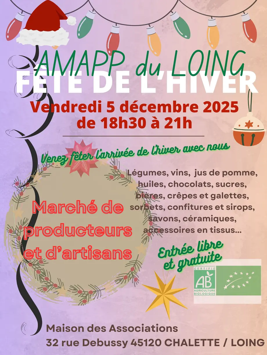 Marché et ferme de NoëlLe 05/12/2025 Cernoy-en-BerryLe Comité d’Animation de Cernoy-en-Berry vous invite à plonger dans la magie de Noël lors du Marché de Noël, le vendredi 5 décembre à partir de 16 h.