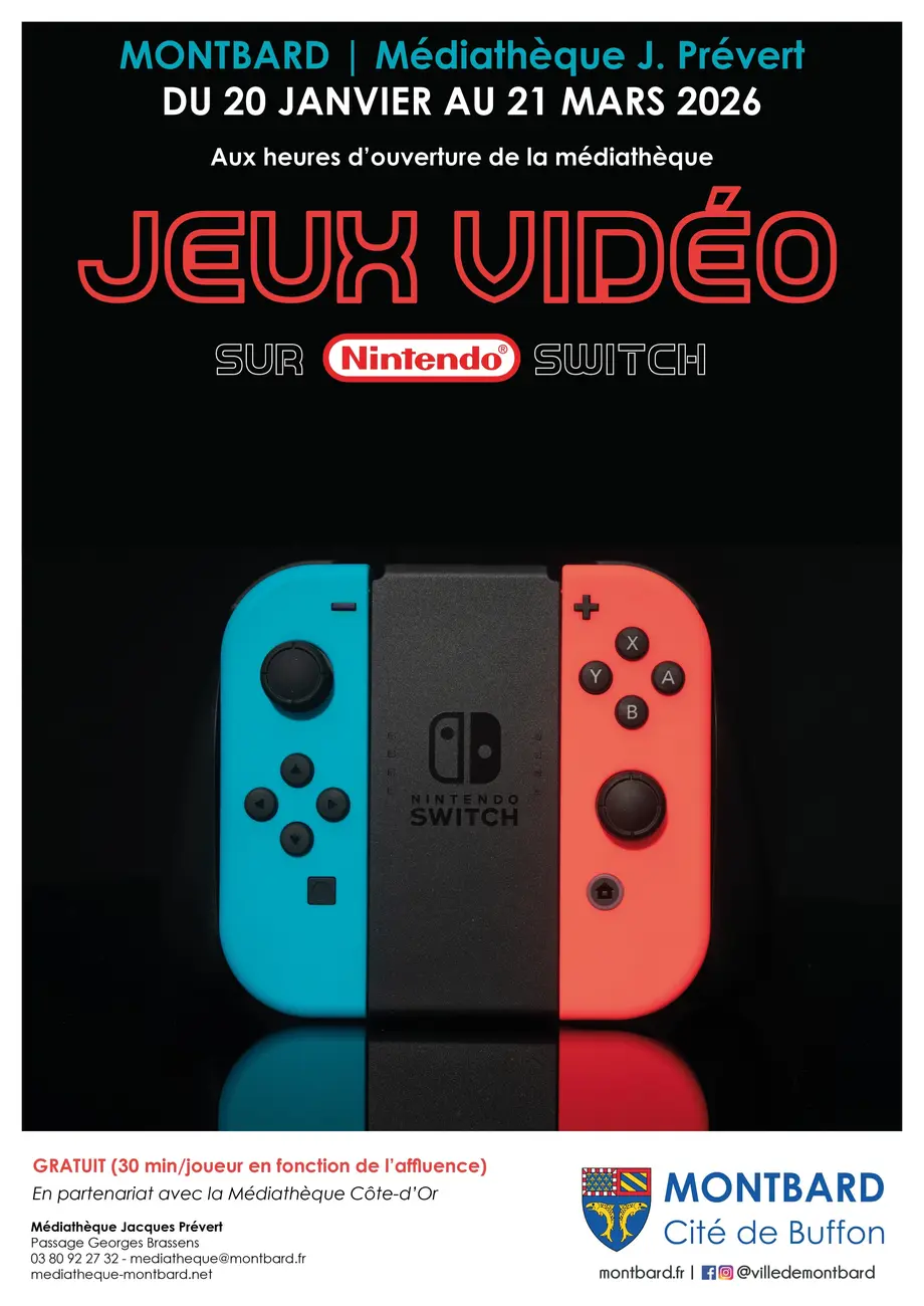 La médiathèque met à disposition, dans l'espace Ado, une console Nintendo Switch et ses accessoires, avec une sélection de jeux tous publics :