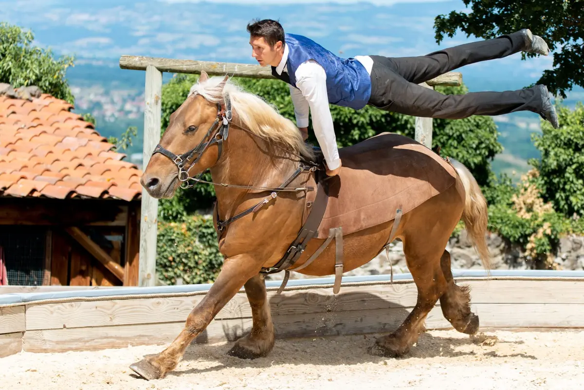 La Volerie du Forez se distingue également par son spectacle équestre, qui associe chevaux et rapaces dans une mise en scène immersive. Cette dimension artistique et historique apporte une véritable valeur ajoutée à la visite, en créant un moment à la fois spectaculaire et familial. L’alliance entre cavaliers, chevaux et oiseaux renforce l’émotion et fait de cette sortie un rendez-vous incontournable dans la Loire.