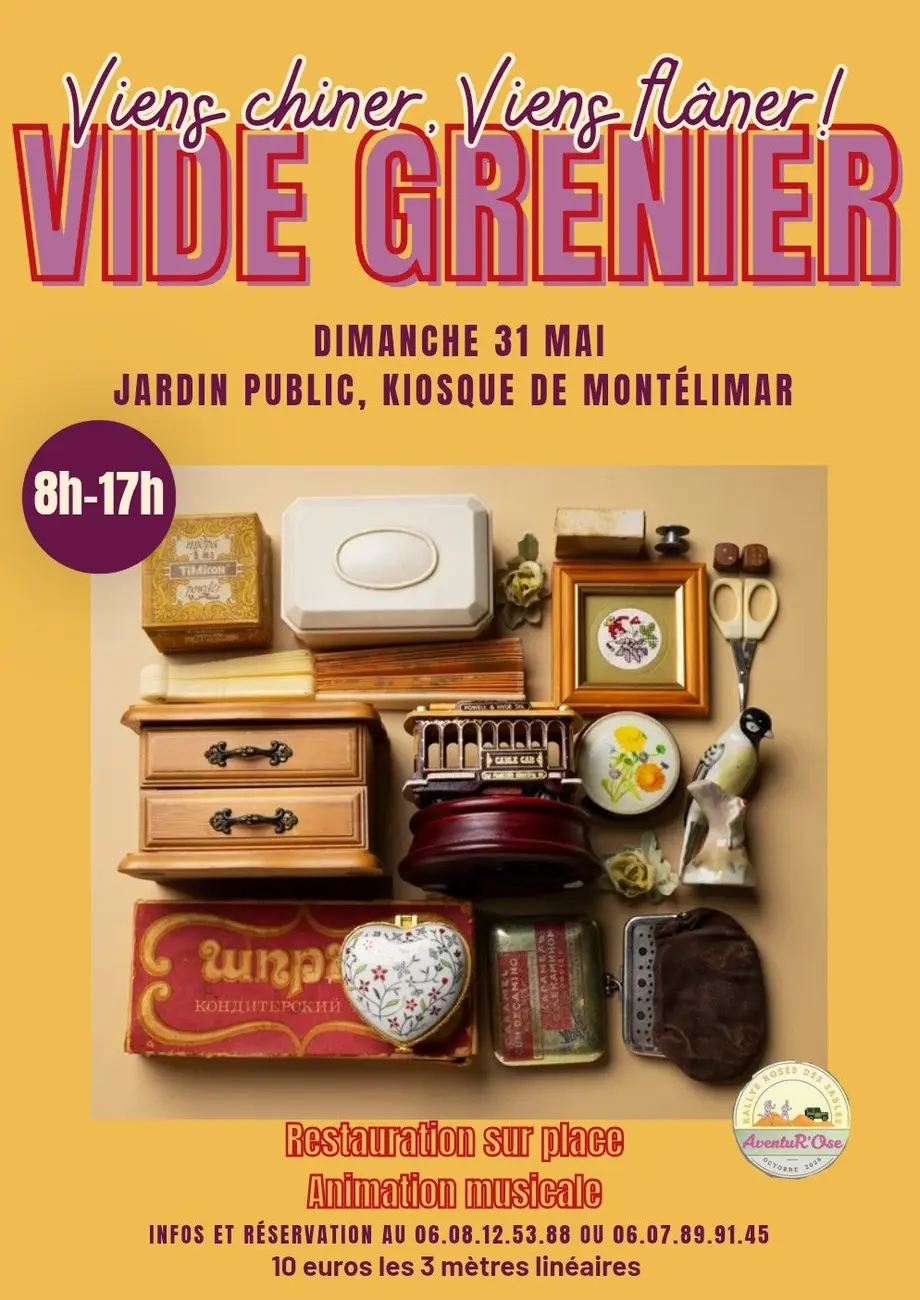 Le 31 mai, venez profiter d’une journée conviviale au vide-grenier organisé au Jardin Public de Montélimar ! Que vous soyez chineur passionné, amateur de bonnes affaires ou simplement en quête d’une belle sortie en famille, cet événement est fait pour vous.