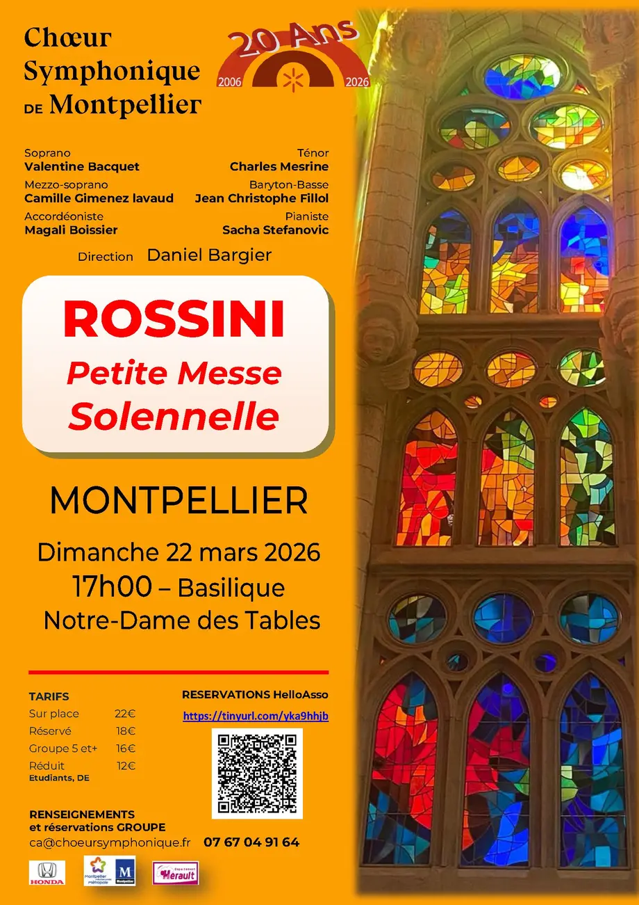 C’est à ce banquet que le Chœur Symphonique de Montpellier vous invite : plus de castrats, plus d’harmonium, avantageusement remplacé par un accordéon, mais les cinquante choristes qui le composent vous régaleront et vous convaincront, comme en 1864 le critique Filippo Filippi, que « Rossini s’est surpassé lui-même, car personne ne saurait dire ce qui l’emporte, de la science et de l’inspiration. La fugue est digne de Bach pour l’érudition. »