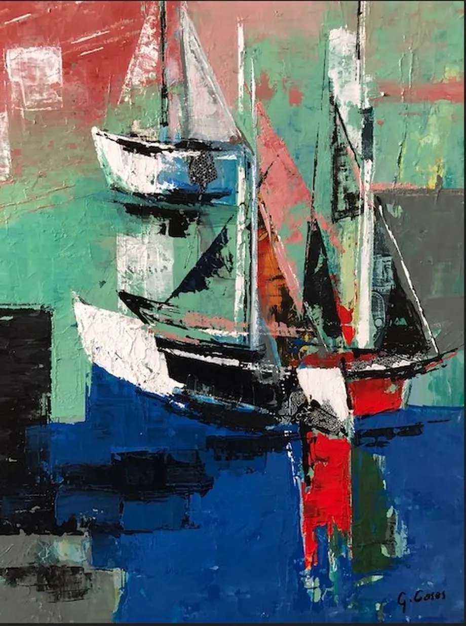 Gérard Cases peint depuis l’enfance. Géomètre de profession, il a toujours été passionné par cet art. Dans son processus créatif, avant le coup de pinceau vient la photo. « Je réalise pas mal de clichés lors de mes voyages. Ensuite, je les tire sur papier, en format affichette, et je découpe là-dedans », relate-t-il. À voir ses tableaux, le résultat est bluffant. On ne sait plus où se situe l’image de départ. Peinture et photo s’entremêlent, entre abstrait et figuratif.
